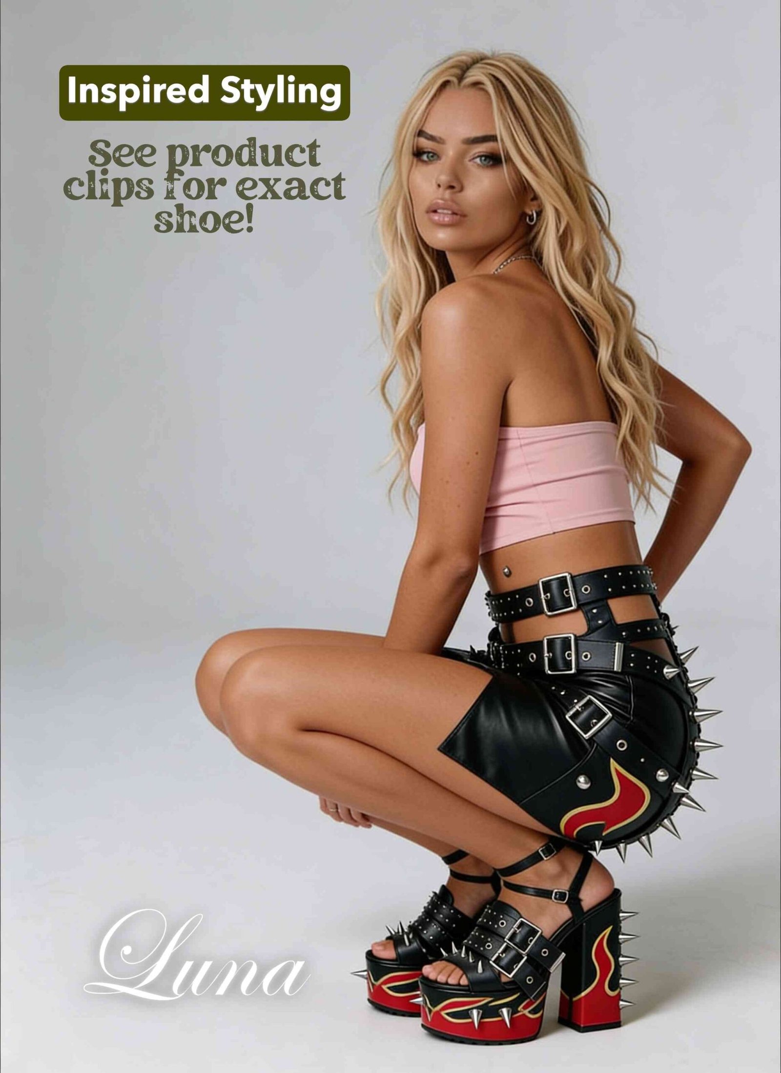 These flame platform heels are bold, aggressive, and unapologetically different. Built for statement looks, photoshoots, and nights where blending in isn’t an option.